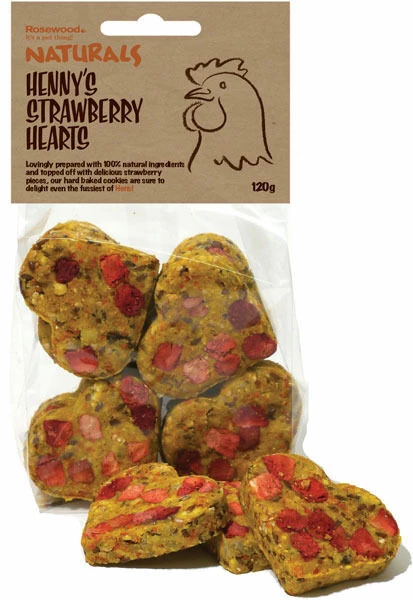 8 X Rosewood Henry’s Naturals Chicken Treats Strawberry Hearts 120g