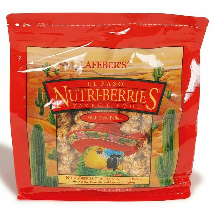 Lafeber NutriBerries El Paso contains only nutritious, natural ingredients including red and green bell peppers, rolled into berry shaped pieces and coated with vitamins and minerals. Each berry contains the 40 essential nutrients recommended by Dr. T.J. Lafeber which are essential to a bird’s health.
