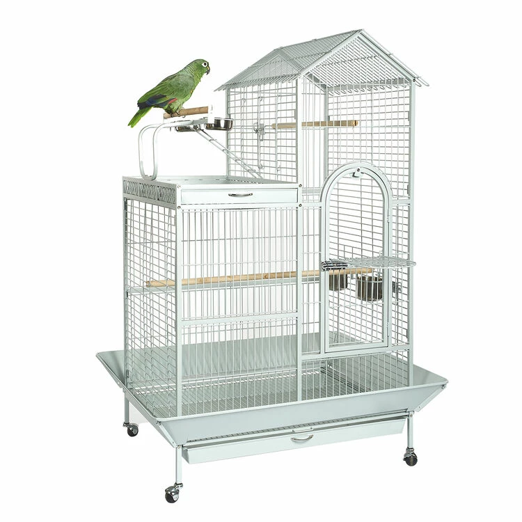 This Sky Pet Products Angel Stone Bird Cage will be the perfect home for your medium sized parrot, such as an African Grey. It offers plenty of space inside, with a unique design that has a vaulted apex roof, with the addition of a play top above the cage.Â