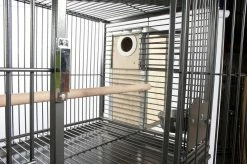 The durable cage has a pull out cleaning tray, a safety grill and large swing opening door for easy access. It is designed with castors so that you can move it around as needed, complete with three perches and six stainless steel feeding bowls.