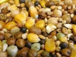 Ingredients: French Roundberry Maize, Maple Peas, Wheat, Blue Peas, White Peas, Red Dari, White Dari, Safflower, Tares, Tic Beans